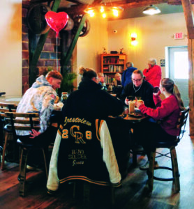 He admits he enjoys a good coffee shop, as it has a different vibe than people encounter at his shop across the street. “I wanted to do something with more of a community feel,” he explained Thursday, as customers sat around the dining area relaxing with family and friends as they took in the rustic decor.