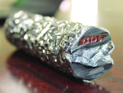 Hafnium crystal bars used in aerospace engines is one of the products H&Z Materials Inc., at Yellow Creek will be manufacturing when the business is operational at their new location in Yellow Creek Township. (Photo by Kristi R. Garabrandt)