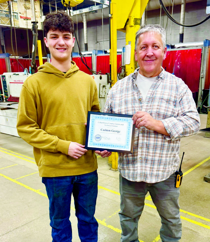 Cashton George, Columbiana County Career and Technical Center’s December Student of the Month, is pictured with Michael Boyle, Welding and Fabrication Program instructor. (Submitted photo)