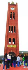 The students began their tour outside the ELHSAA Center, located at 216 E. Fourth St., viewing the clock tower, which is where the origin for the association began.