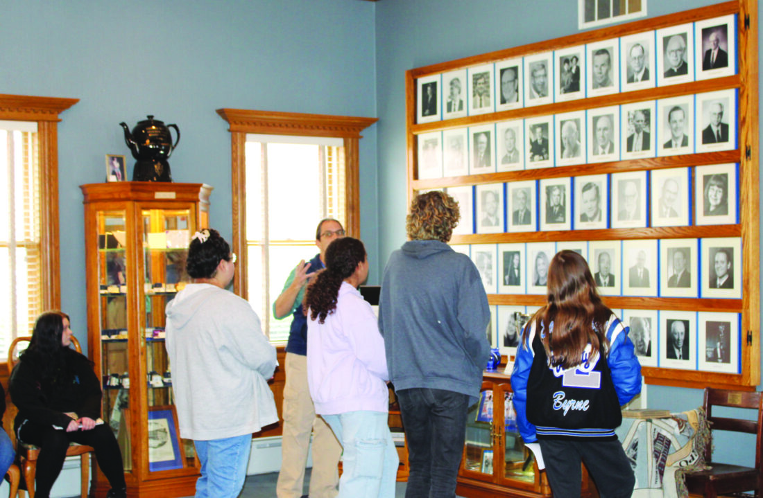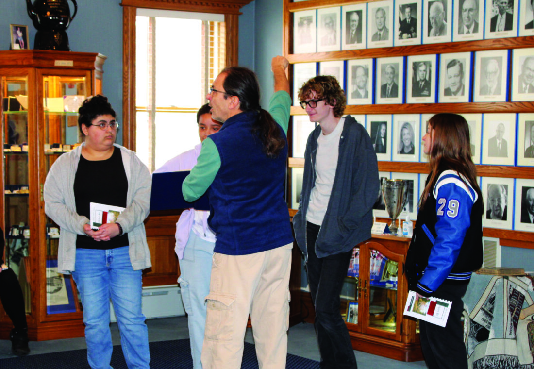 East Liverpool High School students learn the history of the East Liverpool High School Alumni Association and what the organization currently does while touring the East Liverpool High School Alumni Association Center. (Photo by Kristi R. Garabrandt)