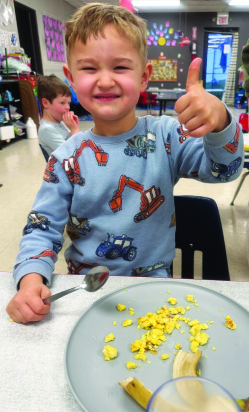 - Kiducation Early Learner Violet Grodhaus, 1, enjoys a nutritious meal. (Submitted photo)