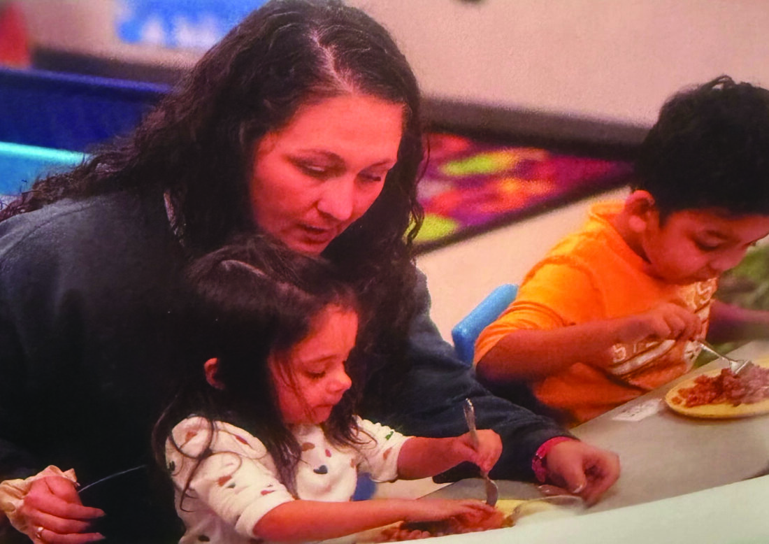 - Kindergartin Readiness Teacher Patricia Cataldo helps Naudia Sanchez and Axel Williams with their meals. (Submitted photo)