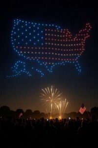 - An example of a past patriotic themed display presented by Glyphix for another one of its clients in this file photo. This year Glyphix comes from out-of-state to Columbiana, where it will produce a similar drone light swarm show for the city’s semiquincentennial Fourth of July festivities. (Photos courtesy of Glyphix)