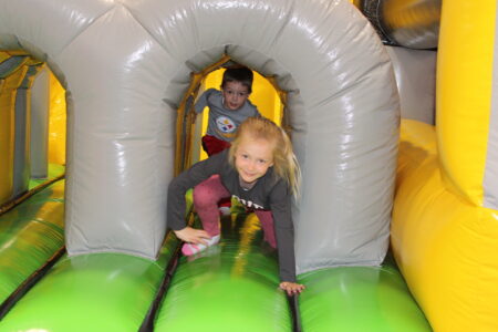 - Carolyn Faloon, 5, and her brother Caleb enjoy the bounce houses. (Photo by Kristi R. Garabrandt)