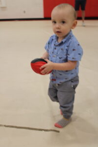 Michael Deeken, 1, plays with a football. (Photo by Kristi R. Garabrandt)