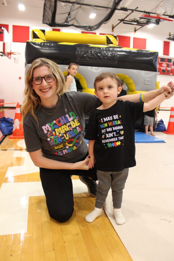 - Alli Coke wears matching Autism awareness T-shirts with her son Kohen, 2, who was recently diagnosed with Autism. (Photo by Kristi R. Garabrandt)