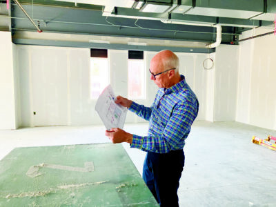 Columbiana County Commissioner Tim Ginter looks over the layout of the various rooms at the Columbiana County Archives Storage Facility, including the room where he’s standing, which will be the new home for the nonprofit Columbiana County Archives and Research Center. (Photo by Mary Ann Greier)