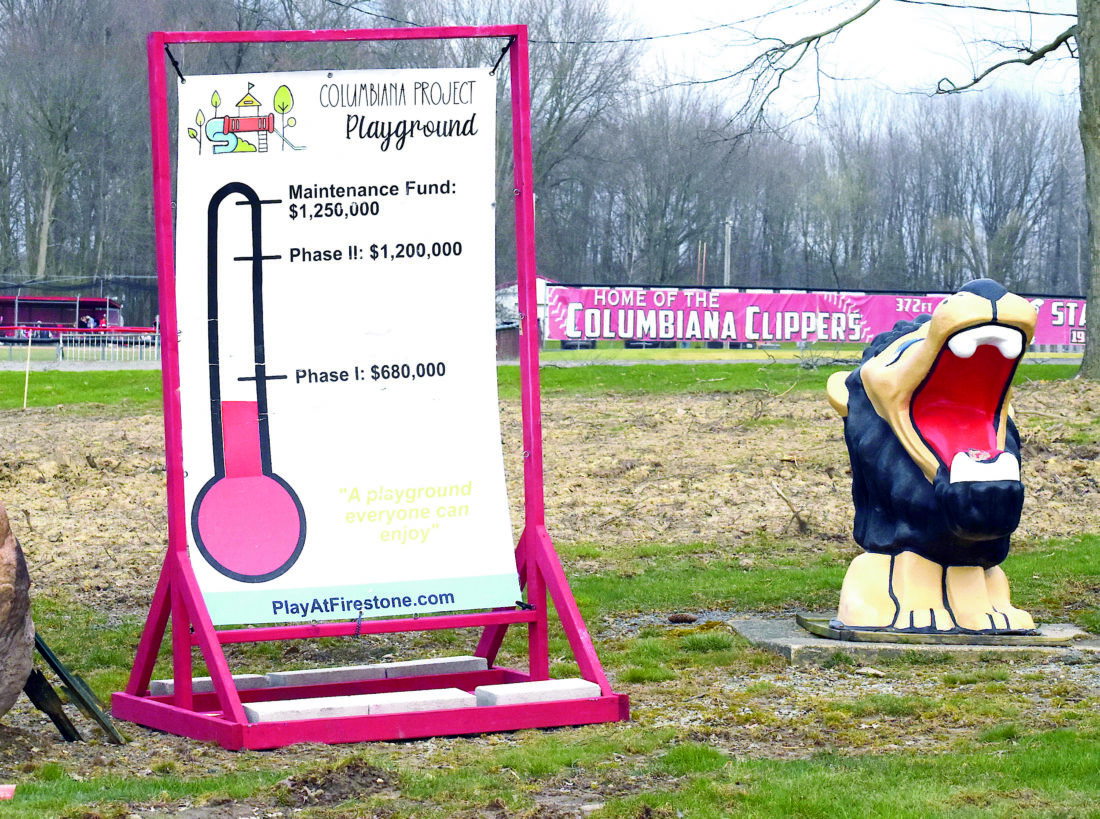 The site of the former Firestone Funland in Columbiana is empty except for the old Lion drinking fountain. Construction of Phase 1 for a new playground is expected to be completed this year and Phase II is being planned for next year. (Photo by Ron Firth)
