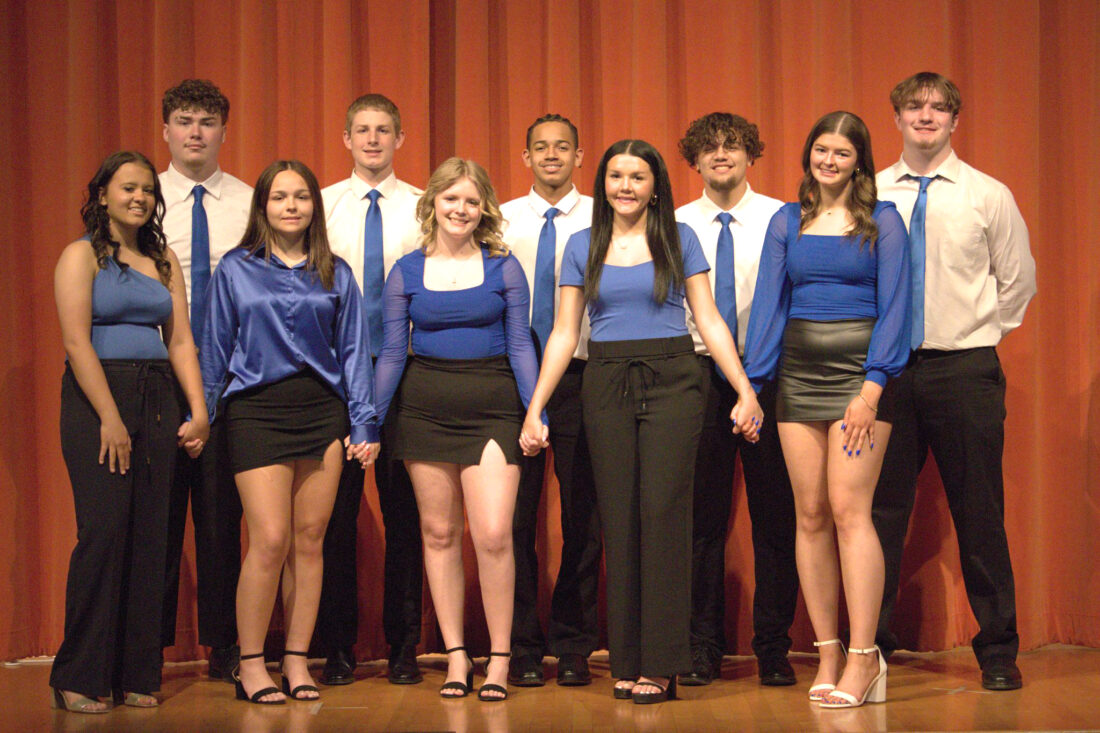 The 2026 Wellsville High School Junior Prom Court includes, from left, front row, Chloe Kessler, Karolynn Cataldo, Kaylee Kazee, Makenzie Thompson, MacKenzie Bosco; back row, Alexander Bess, Cooper Frank, Darnell Roe, Gage Vance and Andrew Mackey. The crowning of the 2026 WHS Junior Class Prom King and Queen will take place during the Grand March, “A Night in Greece,” on Saturday, April 25 at 5:30 p.m. in the Wellsville High School Gymnasium. Doors open to the public at 5 p.m. Students will celebrate with dinner and dancing to follow in the gym and an after-prom at Extreme Air Trampoline Park in Boardman. (Submitted photo)