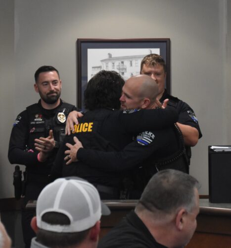 LISBON — The Lisbon Blue filled village council chambers to send two of its own into retirement and celebrate the promotion of three more.