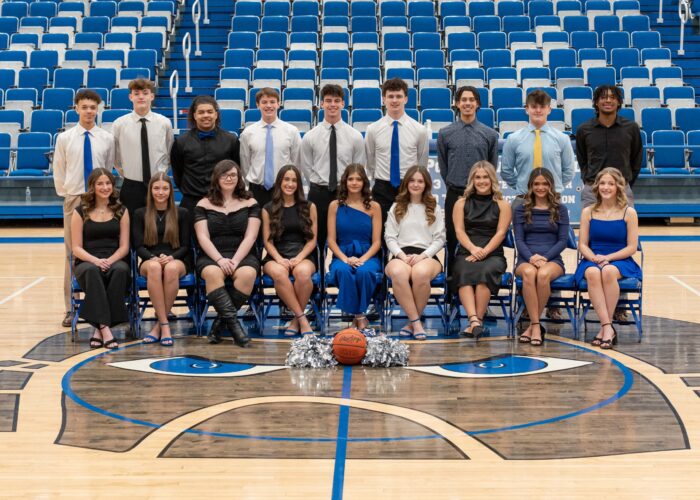 East Liverpool High School’s Winter Homecoming court includes, from left, seated, freshman Kendall Martin, sophomore Hailey Board, seniors Jazmine Hughes, Kamryn Yanni, Ahkya Potts, Julianna Burkett, Reece Ludwig, juniors Lyndsey Westerman and Sierra Reed; standing, freshmen Jayce Douglas and ...