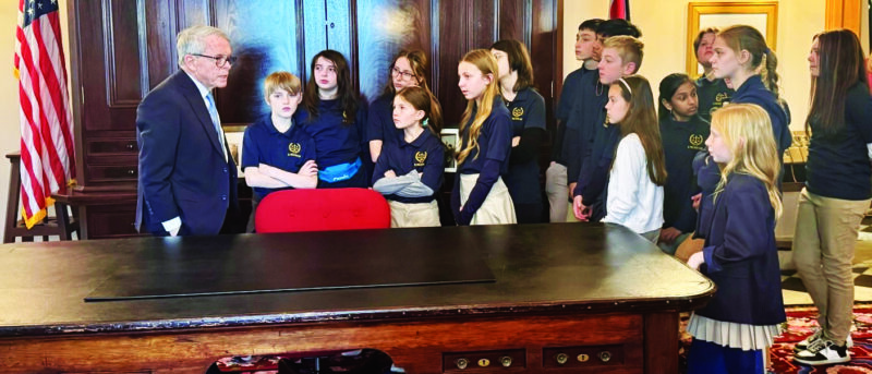 DeWine taught students about the historic Lincoln desk, using artifacts and artwork to teach students about key Ohio moments throughout Ohio history. Story on page A2 and more photos at morningjournalnews.com. (Submitted photo courtesy Emille Prosko)