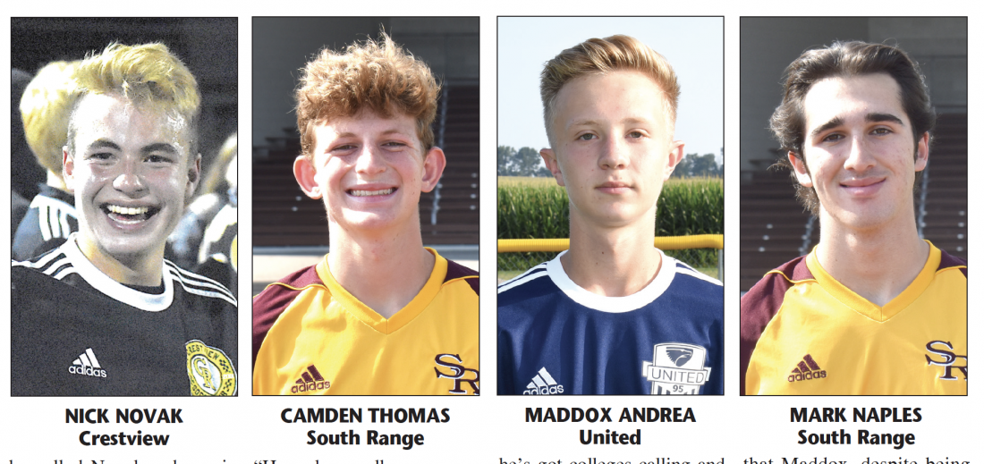 South Range senior midfielder Thomas Camden had a monster season with 44 goals and 26 assists as the Raiders finished 14-3-1 with a district final appearance and was named to Div. III first team. Fellow Raider senior Mark Naples was named a second team defender. Offensively Naples contributed three goals and three assists on a team which allowed 26 goals all season and had a 12-game winning streak. The Raiders also had six shutouts.