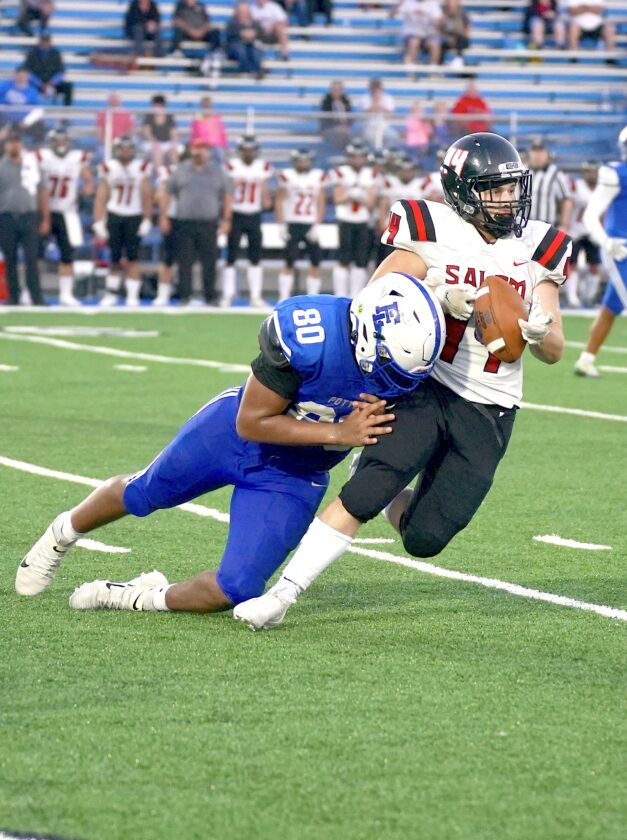 The Potters got a huge shot of momentum at the outset of the second half when speedster Marquise Glenn cradled in a punt, skillfully dodged several Salem tacklers and set sail down the left sideline on a 58-yard punt return for a touchdown, giving the Potters a 14-0 lead following Miller’s PAT kick with 9:56 left in the third quarter.
