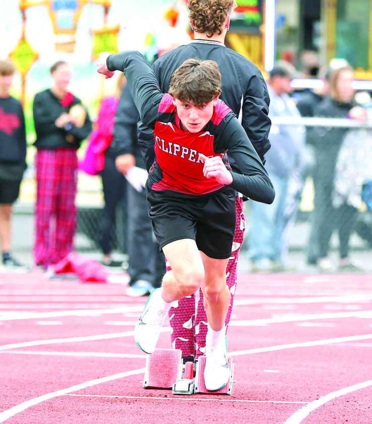 Columbiana’s Carter Johnson breaks out of the blocks in the 400-meter dash on Tuesday. (Photo by Gary Leininger)