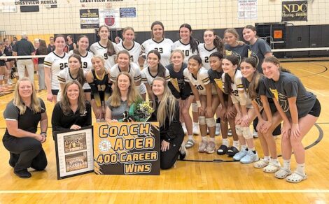 Well, the page is turning to a new era and you can count Crestview’s Alisha Auer among those names. The longtime Rebel coach reached her 400th win of her career as her team captured its 10th straight league title with a 25-10, 25-13, 25-11 win over LaBrae in the Mahoning Valley Athletic Conference Grey Division finale on Tuesday.