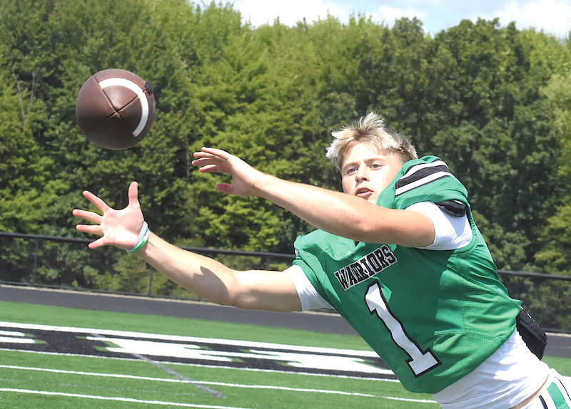 But Perry broke through in the closing minutes of the first half. After a West Branch punt to the Warriors’ own 47 with just over three minutes showing in the first half, the Pirates marched the necessary yardage and scored on a nine-yard scoring pass from junior quarterback Nate Trefzger to a wide open Justin Costello over the middle with just 33.3 seconds showing before the break. The Pirates’ PAT boot was blocked and Perry took a 6-0 lead at halftime.