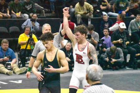 To reach Guntrum (45-0), Brown bested Lakewood’s El Tha with a pin in 4:16 in the quarterfinal. In the semifinal, Brown was down 12-2 with 1:06 to go in the match but came through with two takedowns and two four-point nearfalls to pull out an incredible 16-14 comeback over Alter’s Alora Strauser. Strauser had pinned Brown earlier in the season.