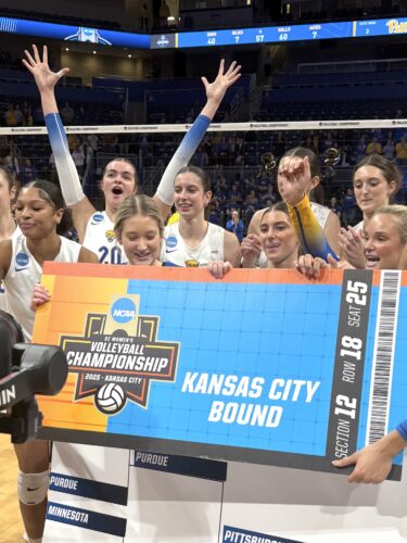 PITTSBURGH — Top-seeded Pitt advanced to its fifth consecutive NCAA national semifinal with a 25-22, 25-21, 22-25, 25-17 victory over third-seeded Purdue on Saturday night at the Petersen Events Center.